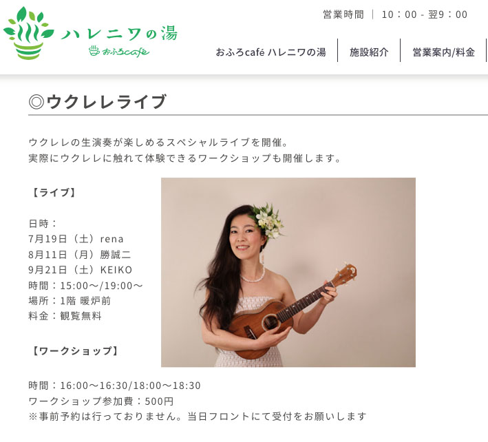 ウクレレの生演奏が楽しめるスペシャルライブを開催。
