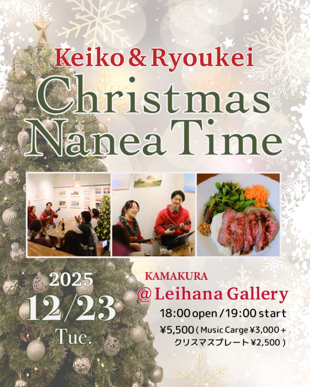 12/23(火) Keiko & Ryoukei Christmas Nanea Time@鎌倉Leihana Gallery2025年12月23日 Keikoハワイアンライブ 12/23(火) Keiko & Ryoukei Christmas Nanea Time @鎌倉Leihana Gallery Post navigationPrevious 12/16(火) Three Titas @横浜THUMBS UP